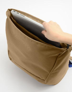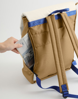 | 背面側のポケットにはA4サイズの書類、ノートPCやタブレットも収納可能です。 | ファスナー付きのフロントポケットは、スマートフォンや手帳などすぐに取り出したいものに。 | 充実の収納に加え、背面には直接メイン収納へアクセスできるファスナー付きです。 | |||