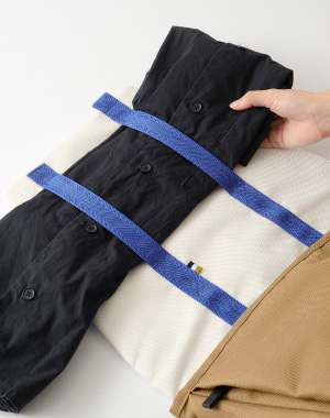 | キャリーにオンできる背面ループを備えています。 | 天面のループでフック等にもかけておくことができます。 | 持つ人の体に優しくフィットする素材を使用しました。 | |||