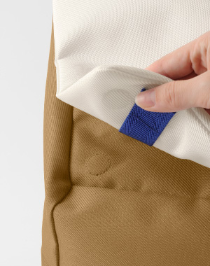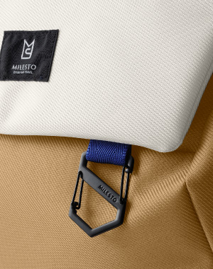 | フラップはマグネット式でスマートに開閉できます。 | 本体中央の「MILESTO」ロゴ入りタグがポイント。 | フラップには、カラビナやリフレクターを取り付けることができるループ付き。(カラビナは商品に含まれません) | |||