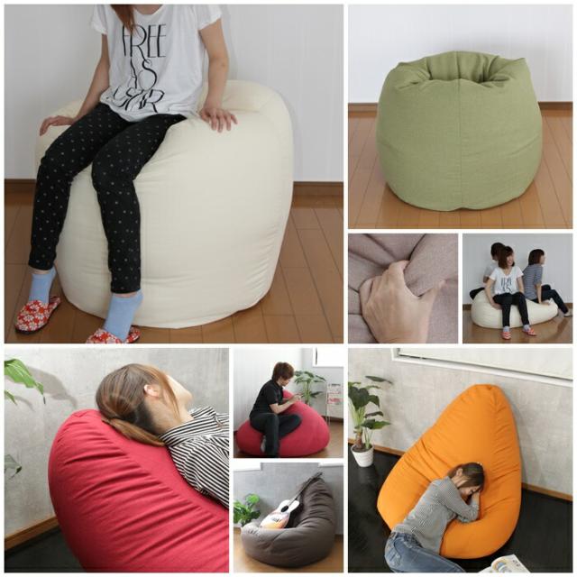 椅子のように座ってみたり、寝転んでみたり、またがってみたり、座り方によって形を変えるビーズクッション。
