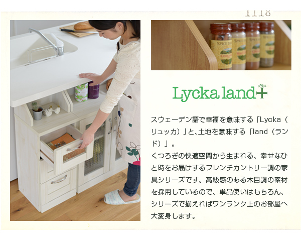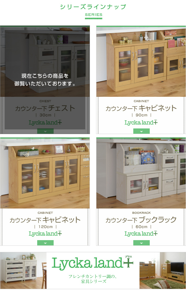 Lycka land カウンター下 チェスト 30cm幅 カウンター下収納 高さ80 引き出し 引出し 引出し収納 キッチン