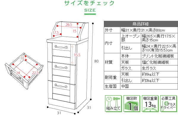 [外寸]幅31×奥行31×高さ80.0cm