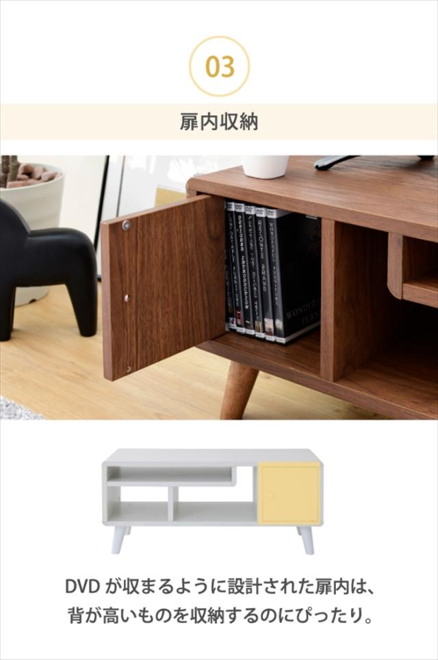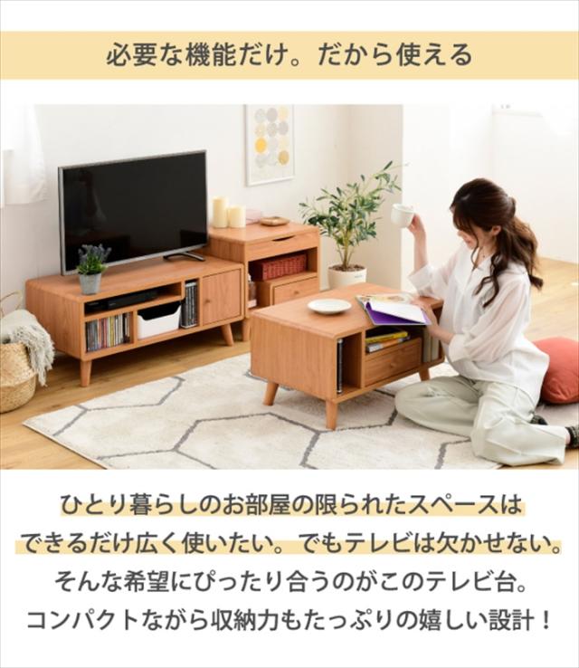 | 収納するものから設計されたデザインだから、コンパクトでも機能的。 テレビまわりに必要なものをスマートに収納してくれる頼れるTV台。 CD・DVD等のソフトから、レコーダー等のAV機器やゲーム機もすっきりしっかり収納。 丸みのある北欧風のデザインはとてもおしゃれで、ひとり暮らしのお部屋にもぴったりです。 |