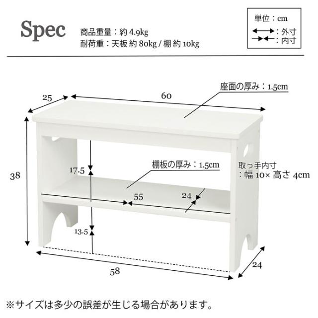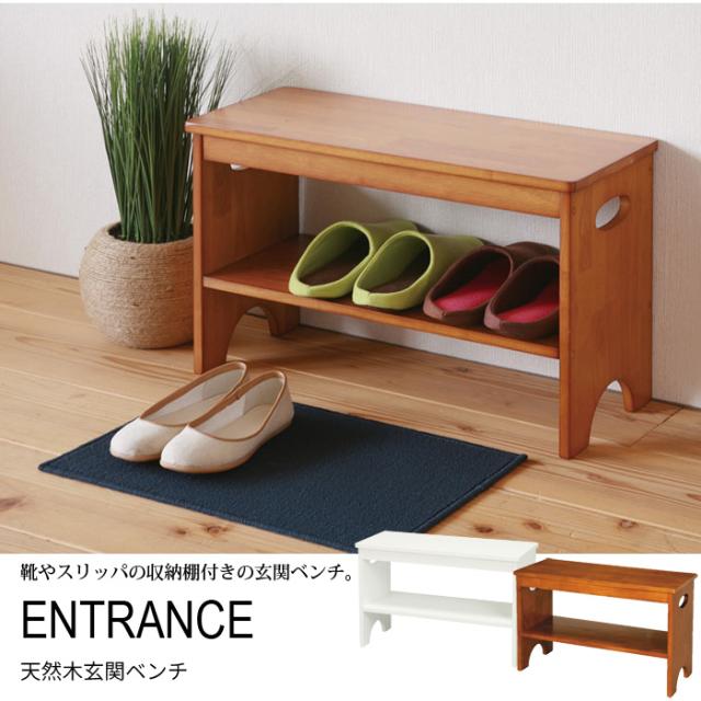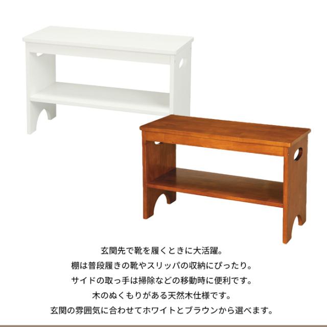 【値下げ】玄関 ベンチ 60cm 木製 イス シューズラック 靴 収納 ホワイト/ブラウン 腰掛け 天然木 /新品アウトレット