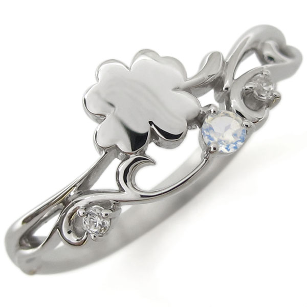 ピンキーリング シルバー925 クローバーリング ロイヤルブルームーンストーン 四葉 指輪