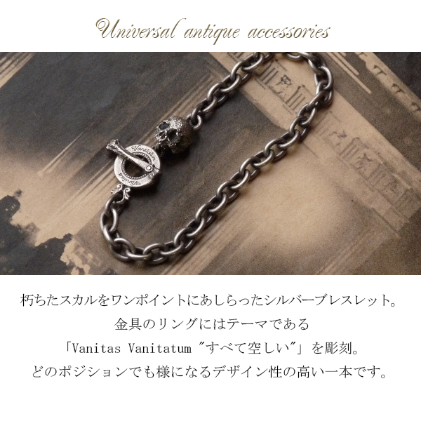 朽ちたスカルをワンポイントにあしらったシルバーブレスレットです。