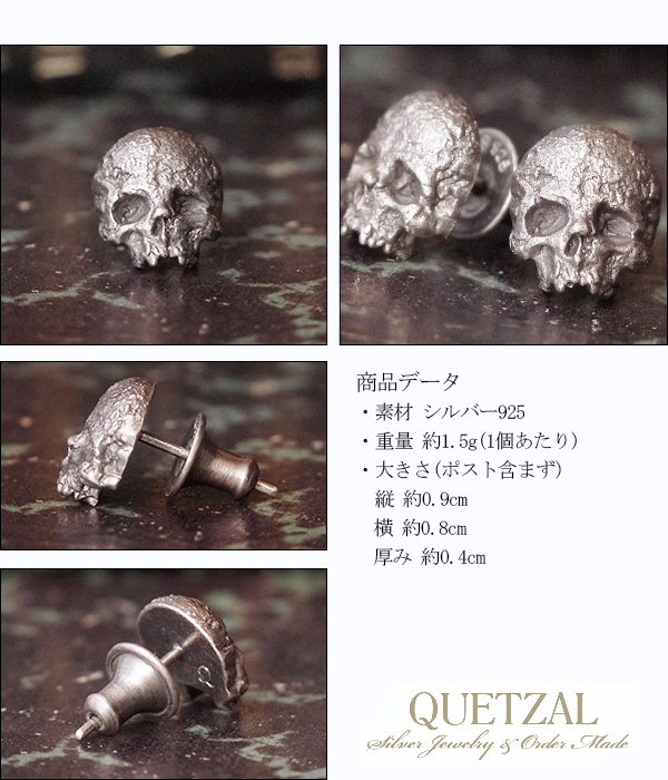 【Quetzal】ヴァニタスシルバーピアス(1P片耳)シルバー925 メンズ 男性用 ピアス 片耳 ブランド