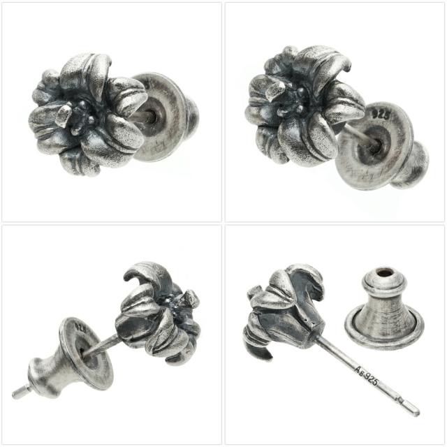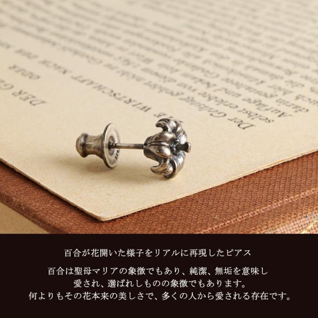 Quetzal 百合 花 ピアス 1P 片耳用 シルバー 925 アンティーク ヴィンテージ クラシック ゴシック リリー リリィ ユリ 美術 芸術 シルバーピアス