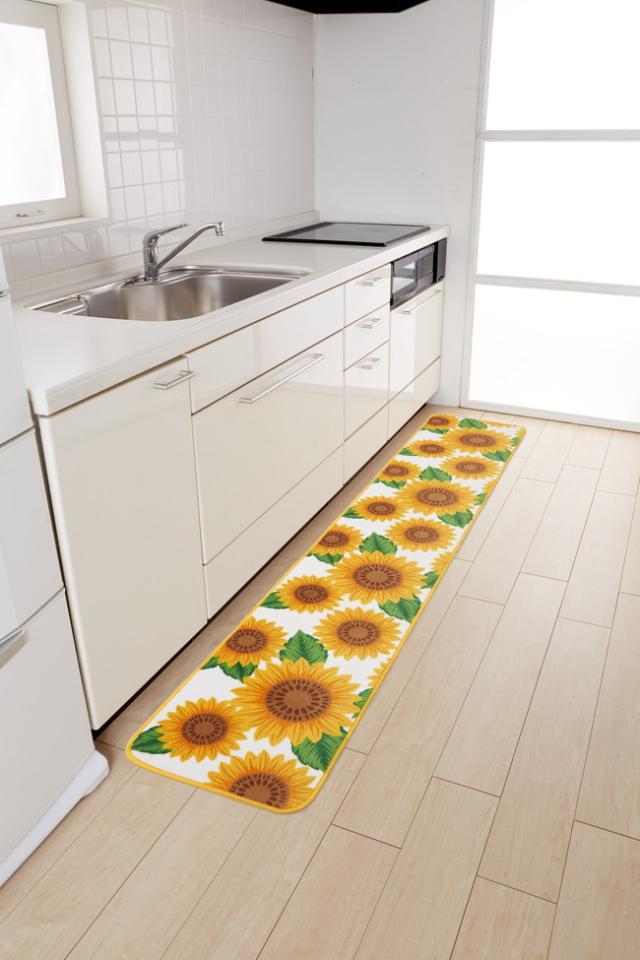 ロングキッチンマットひまわり45x240cm マット 敷き物 敷物 かわいい(代引不可)
