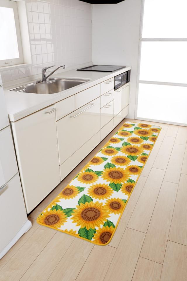 ワイドロングキッチンマットひまわり 60x240cm マット 敷き物 敷物 かわいい(代引不可)