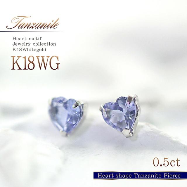 18金 ピアス タンザナイト ハート 小さい 可愛い k18 ホワイトゴールド 18k プレゼント ジュエリー アクセサリー 12月 誕生石 小ぶり かわいいタンザナイトピアス クリスマス プレゼント 記念日 誕生日 贈り物 女性 彼女 妻 セカンドピアス