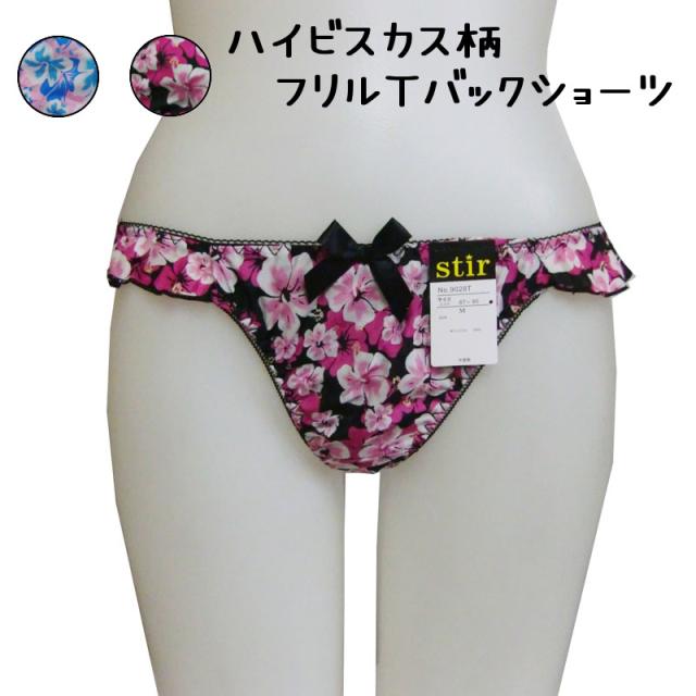 Tバック ショーツ TバックショーツTショーツ タンガ ハイビスカス ハイビスカス柄 夏 フリル レディース 女性 下着 メール便送料無料