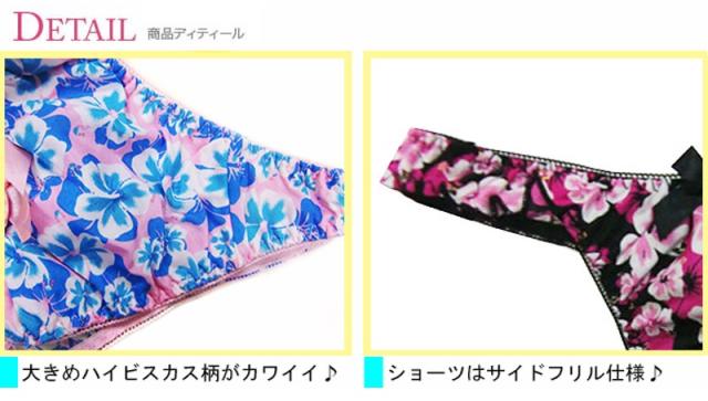 夏らしいハイビスカスのプリントにフリルがカワイイTバックショーツ