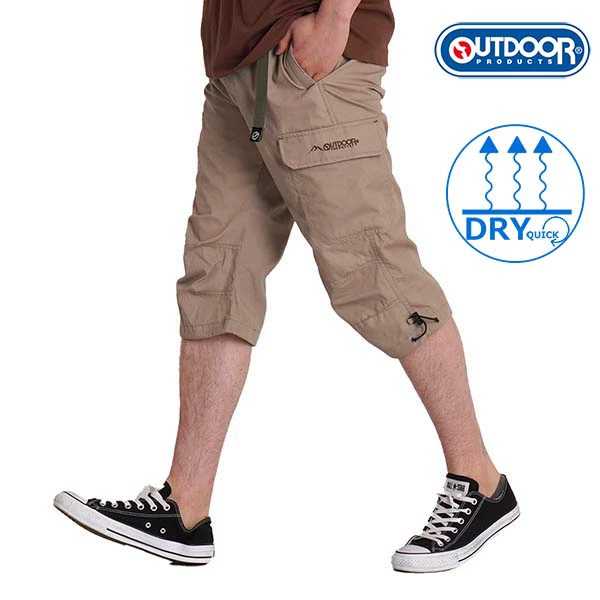 ハーフパンツ メンズ ひざ下 7分丈 七分丈 カーゴパンツ 夏 ショートパンツ ウエストゴム イージーパンツ outdoor products アウトドアプロダクツ ブランド 速乾 ドライ 接触冷感 UV 丈夫 M L LL 黒 カーキ 送料無料 8085