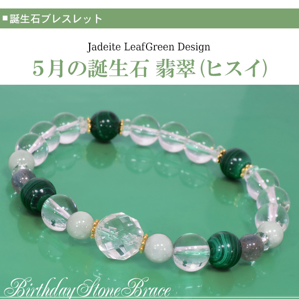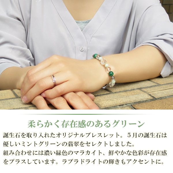誕生石を取り入れたオリジナルブレスレット。5月の誕生石は優しいミントグリーンの翡翠をセレクトしました。