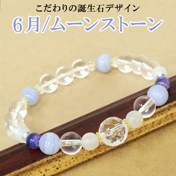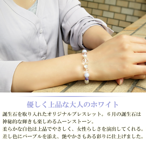 誕生石を取り入れたオリジナルブレスレット。6月の誕生石は神秘的な輝きも楽しめるムーンストーン。