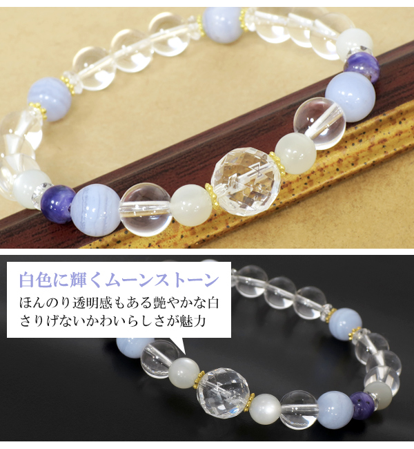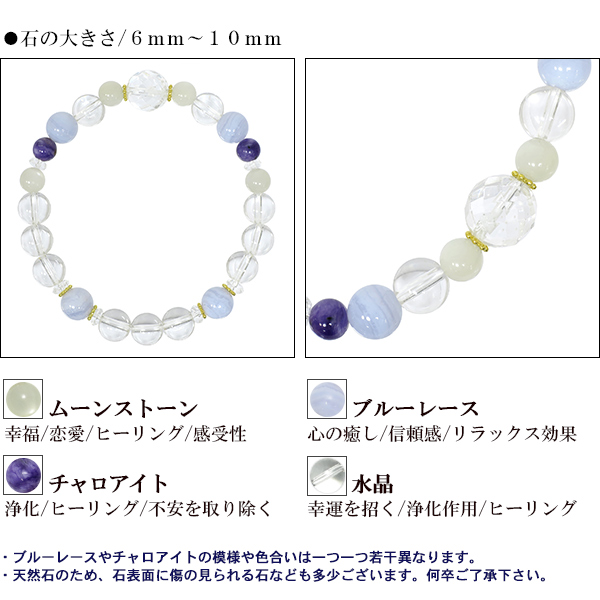 天然石 パワーストーン アクセサリー ブルーレース チャロアイト 水晶 ホワイト 白 パープル 紫 腕輪