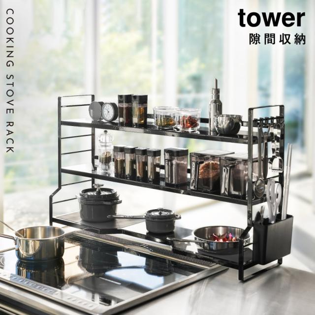 コンロ奥ラック 3段 タワー 山崎実業 tower コンロ奥ラック コンロ奥 隙間 キッチンラック おしゃれ モノトーン ホワイト ブラック 3593 3594 メーカー直送
