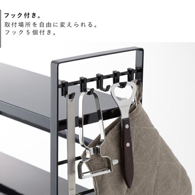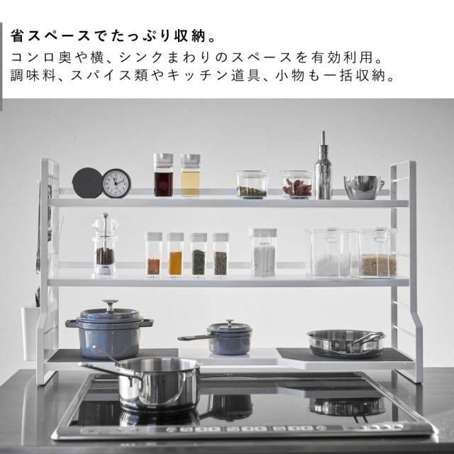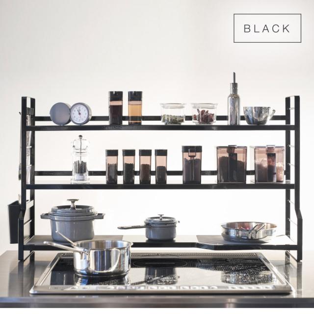 3段の棚でたっぷりの収納力。調味料、スパイス類やキッチン道具、小物も一括収納できる便利なラックです。