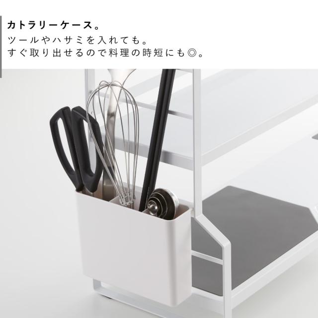 便利なカトラリーケース付き。調理道具やキッチンはさみなどを入れても。すぐ取り出せるので料理の時短にも◎。底に穴が空いているので衛生的。