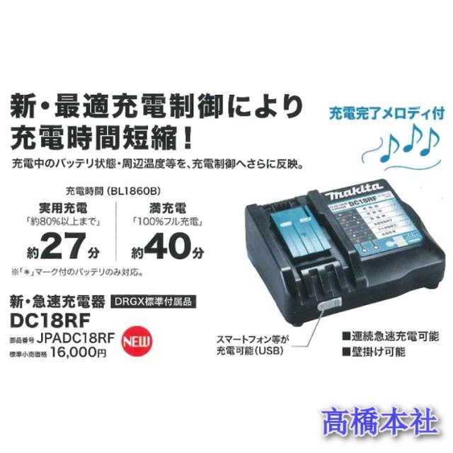 マキタ 充電器 DC18RF (業界最速!!満充電約40分充電) USB付き充電器