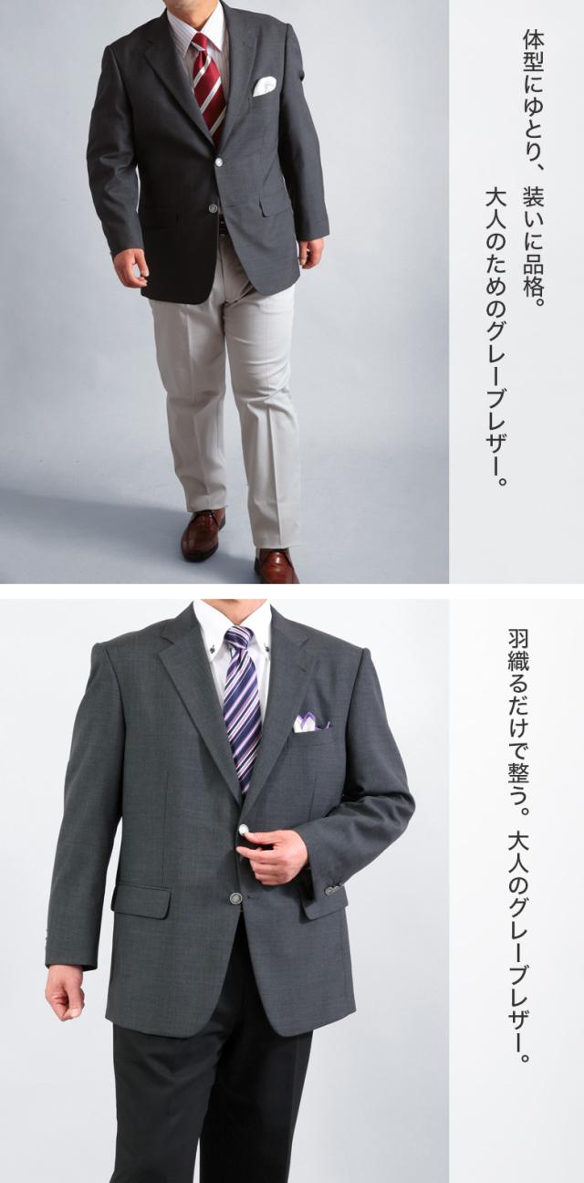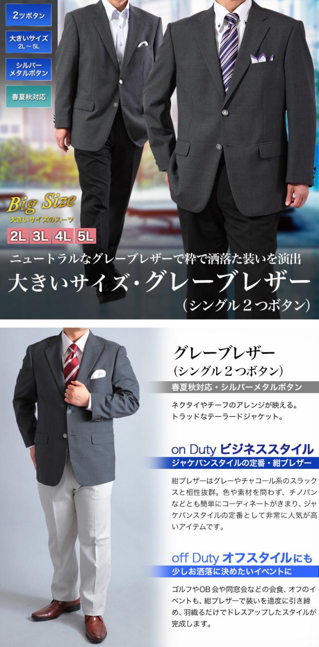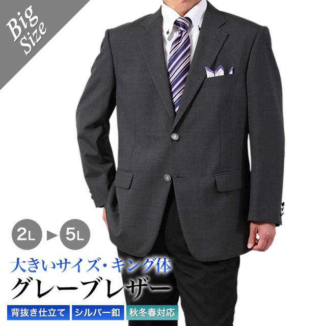 大きいサイズ ジャケット 春夏秋 グレー ブレザー シングル 2つボタン キングサイズ ビッグサイズ 2L 送料無料