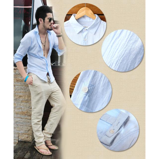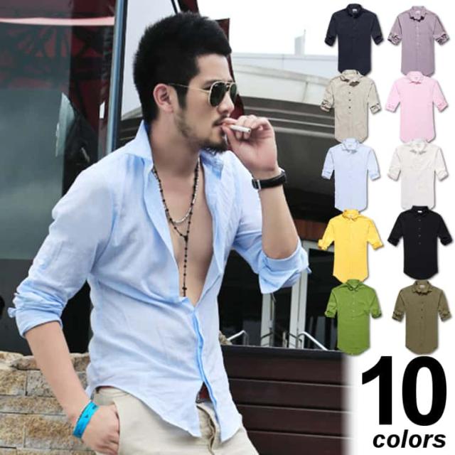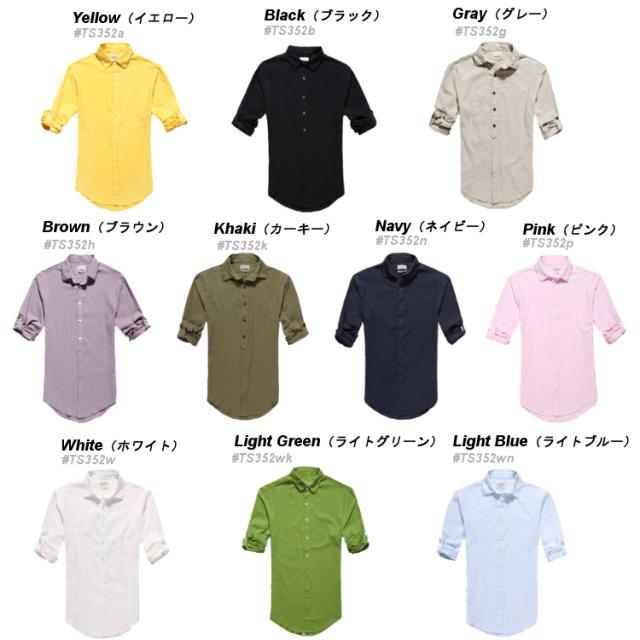 期間限定 SALE [在庫一掃] ロールアップ可 シワ加工 シンプル 長袖シャツ メンズ トップス#TS352 M便