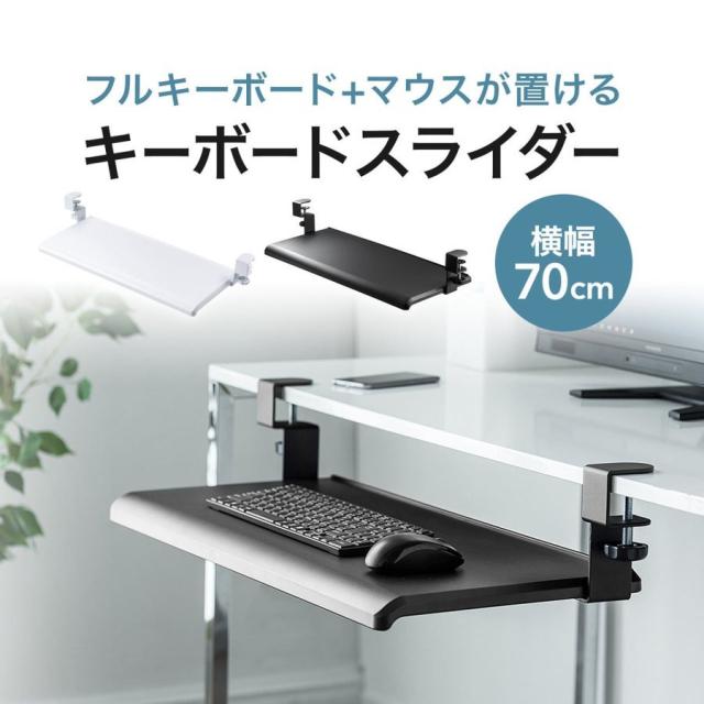 キーボードスライダー クランプ固定式 幅70cm ブラック フルキーボード マウス操作 [100-KB003]