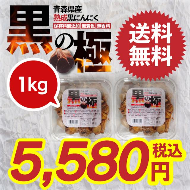 【送料無料】黒の極 青森県産熟成黒にんにく 1kg (500gx2カップ) 国産 青森県産 福地ホワイト六片種 食品 野菜 ドライフルーツ感覚 無添加 無着色 無香料 美容 健康 黒大蒜 サプリ感覚