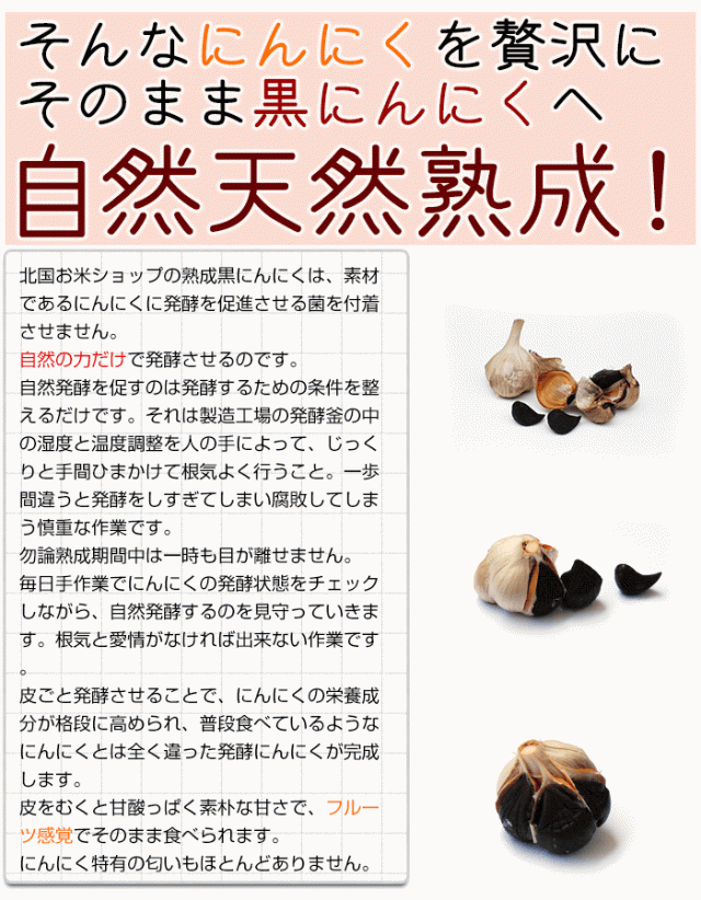 青森県産にんにく(福地ホワイト六片種)を100%使用しそのまま自然熟成させた熟成黒にんにく!健康にも美容にもぴったりです