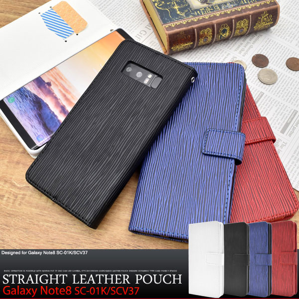 Galaxy Note 8 ケース 手帳型 ストレートレザーデザイン カバー SC-01K SCV37 サムスン ギャラクシーノートエイト スマホケース