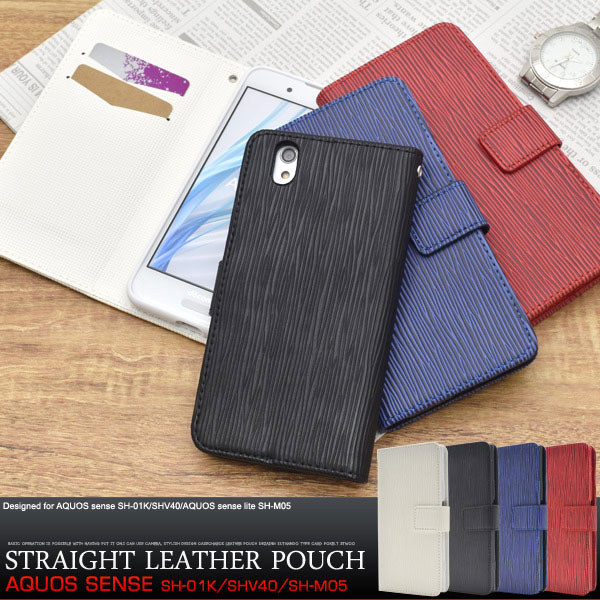AQUOS sense SH-01K SHV40 / AQUOS sense lite SH-M05 ケース 手帳型 ストレートレザーデザイン カバー アクオス センス センスライト スマホケース