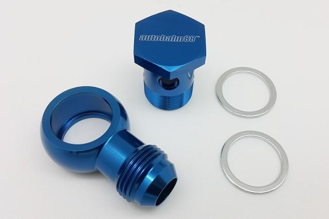 適応車種汎用タイプサイズAN8オス仕様・超軽量アルミ製・バンジョー + AN10オス 1個・バンジョーボルト 1個 M18/P1.5・ワッシャー 2枚・画像(1)は商品の全てで画像(2)は装着例