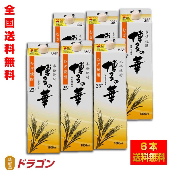 全国送料無料 博多の華 むぎ 25度 1.8Lパック×6本 1ケース 1800ml 麦焼酎 福徳長酒類 本格焼酎 はかたのはな