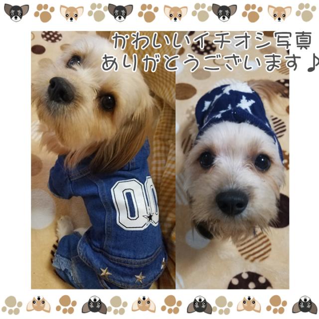 背中のロゴが可愛いつなぎタイプのデニムです。後ろ足→頭→前足の順番で着せてあげると着せやすいです。伸縮性があるので、引っぱりながら着せられます。