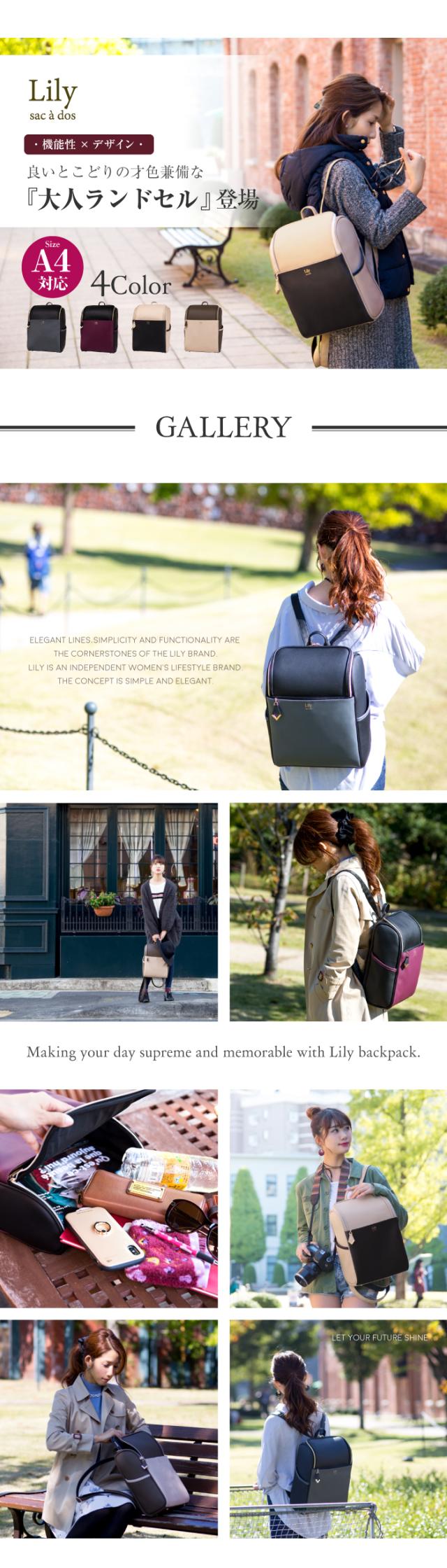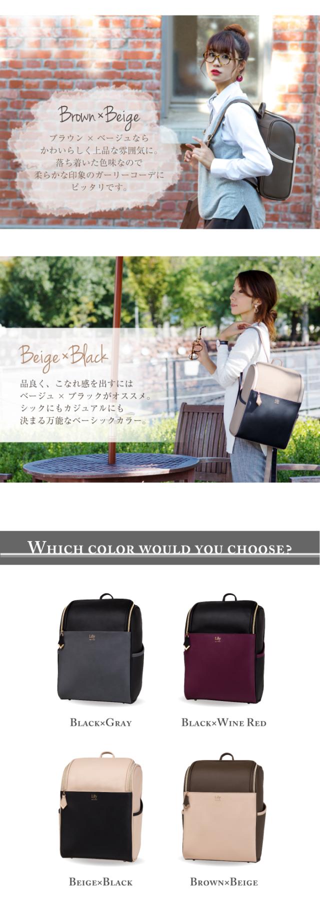 ■キーワードリュック バッグ レディース 大容量 送料無料 ブランド 大人リュック マザーズバッグ リュックサック バックパック 大人ランドセル PUレザー 通学 通勤 ビジネス お洒落 フェイクレザー 軽量 デイパック BOX型 ギフト かわいい 可愛い シンプル バイカラー A4サイズ 女の子 ボックス型 黒 ブラック グレー ブラウン ワインレッド ベージュ NATURALdesign Lily