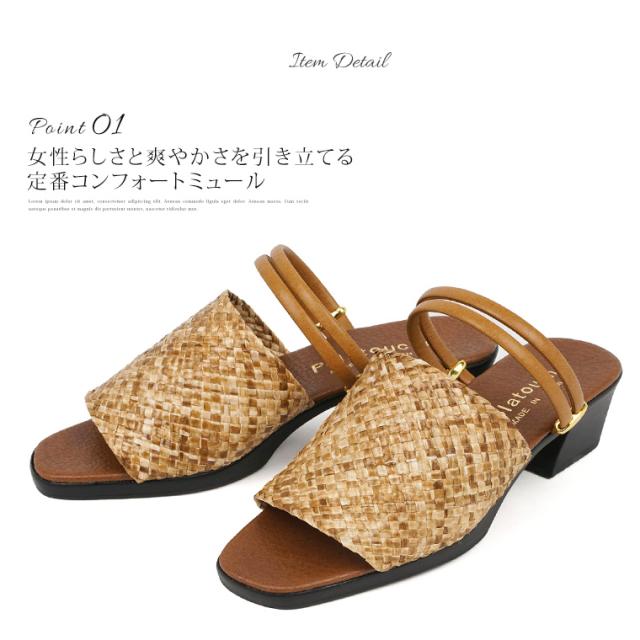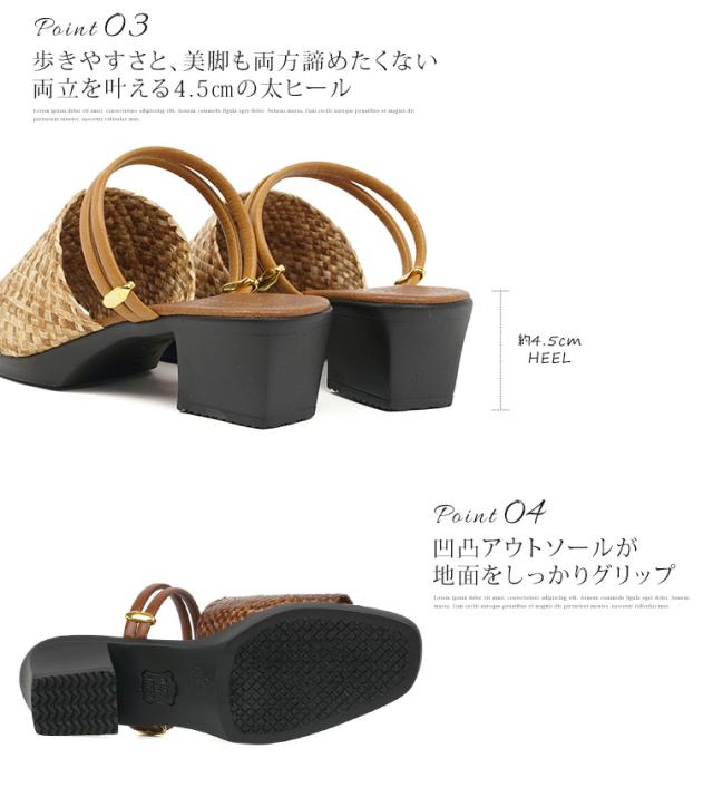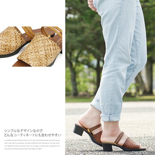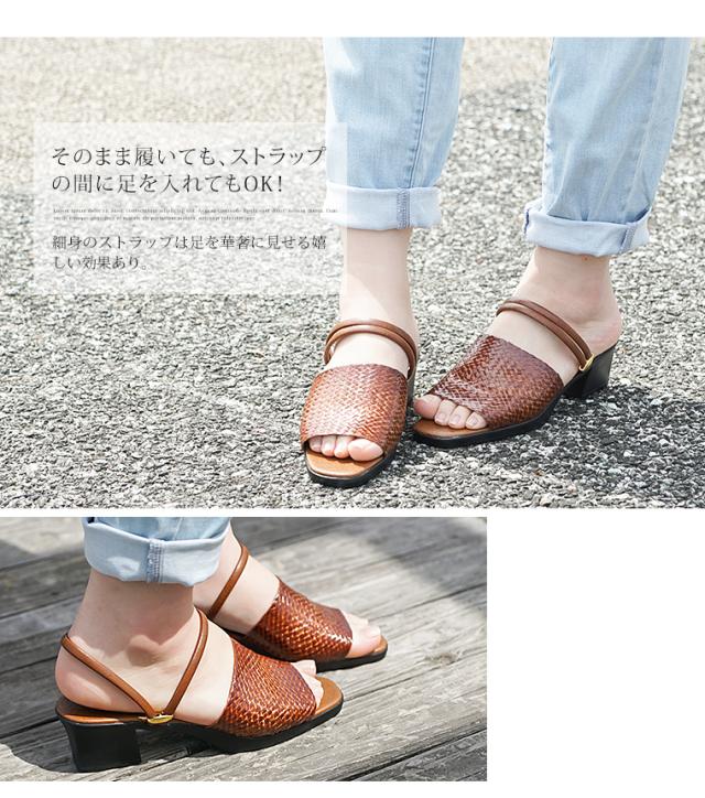 サンダル レディース つっかけ 日本製 美脚 2way ストラップ ミュール サンダル レディース ヒール 4.5cm 軽量 軽い 歩きやすい 痛くない エスニック 女の子 19510 送料無料