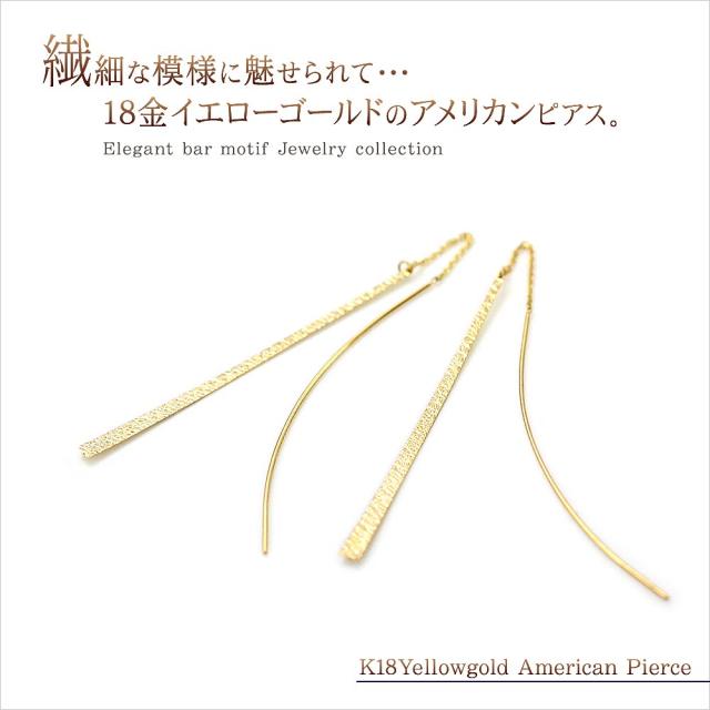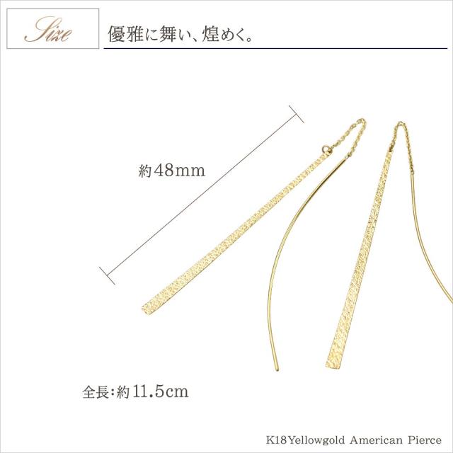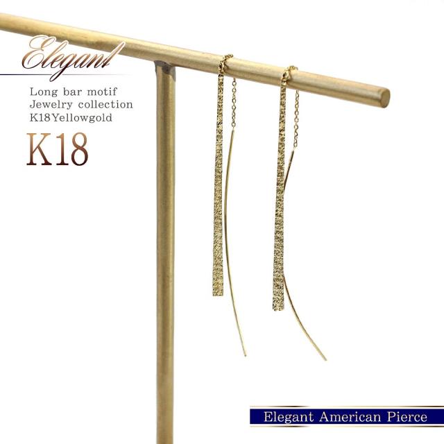 18金 チェーンピアス k18 ゴールド ゆれる アメリカンピアス 18k ピアス アクセサリー シンプル 揺れる 華奢 ジュエリー バー ロングロングピアス おしゃれ 母の日 ギフト 2026 記念日 誕生日 ギフト 贈り物 女性 30代 40代 ストレート 大人っぽい バー 棒 凹凸 模様