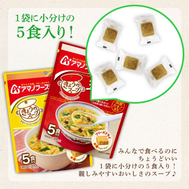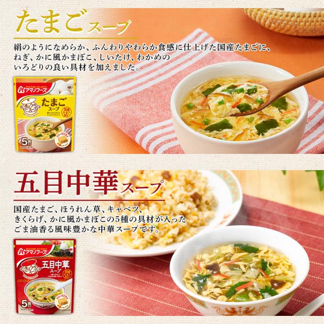 アマノフーズ きょうのスープ 詰め合わせセット を好きなパターンから 選べる 国産 たまご 使用 家族みんなで食べるのにちょうどよい 1袋5個入り( 個包装 ) パウチパック 味 香り 栄養 はそのままに お湯を注ぐだけ でいつでも出来立ての 美味しさ が頂けます。