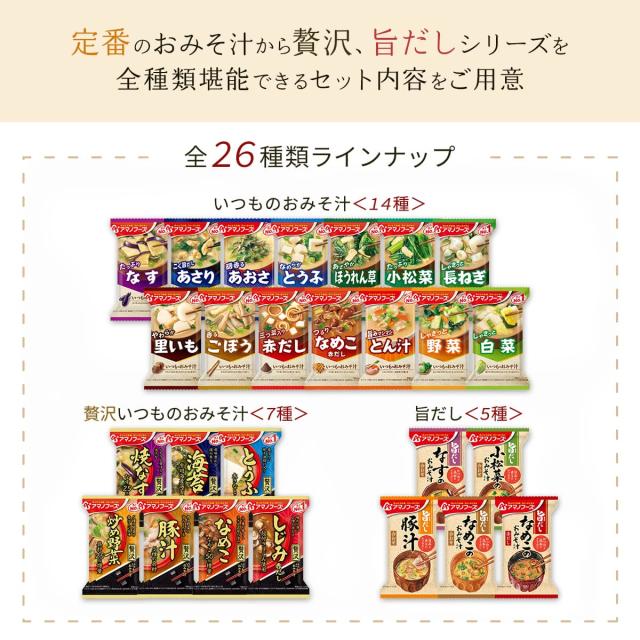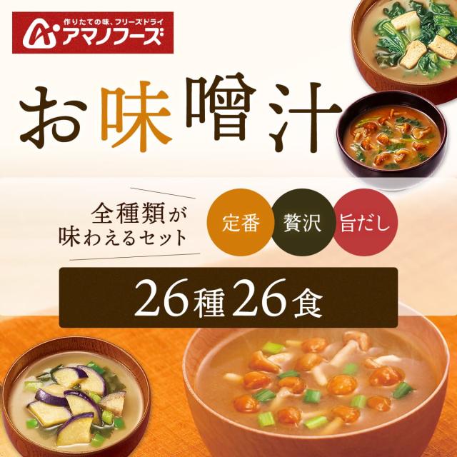 アマノフーズ フリーズドライ 味噌汁 26種26食 詰め合わせ セット 【 送料無料 北海道沖縄以外】 インスタント味噌汁 即席味噌汁 常温保存 いつものおみそ汁 贅沢 旨だし 食品 プレゼント 贈り物 保存食 2026 バレンタイン ホワイトデー