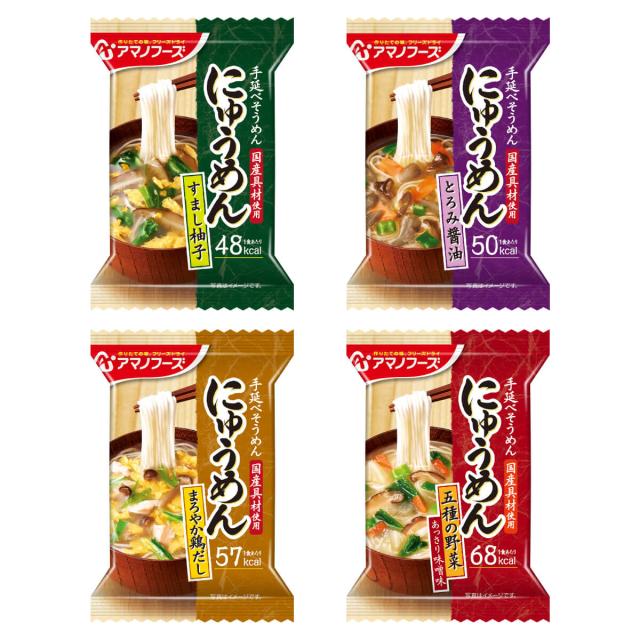母の日 アマノフーズ フリーズドライ にゅうめん 4種12食 詰め合わせ セット 【 送料無料 北海道沖縄以外】 国産 具材 そうめん 即席 インスタント食品 和風 だし 素麺 柚子 野菜 味噌 醤油 2026 新生活 内祝い ギフト