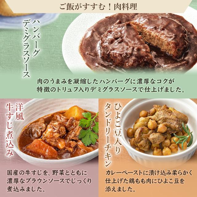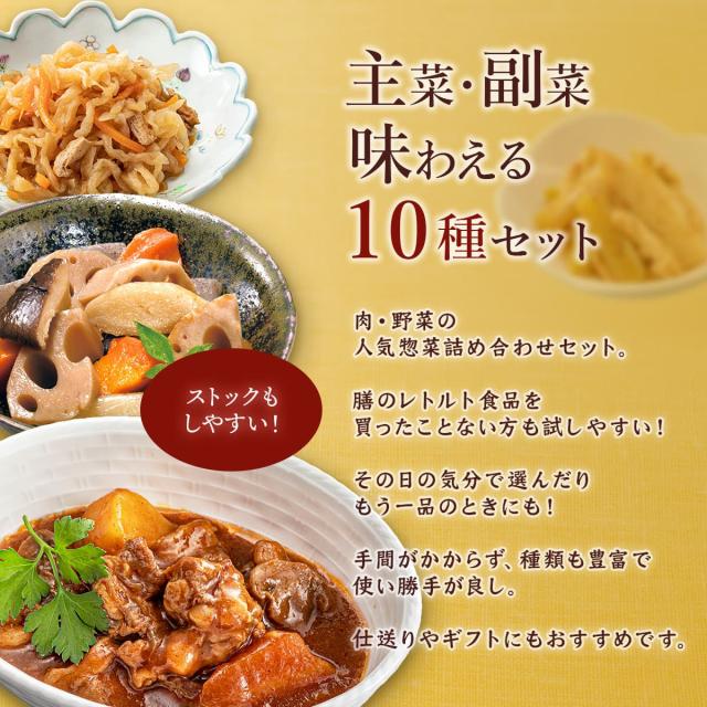 ![]() セットで選べる 肉惣菜10食 |