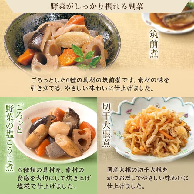野菜 肉 魚 煮物 おばんざい や 煮魚 ハンバーグ など 和食 洋食 おかず お惣菜 主菜 副菜 とレパートリーが豊富。 レンジ 湯煎 で 簡単 に調理ができます。 毎日の ごはん や お弁当 の おかず 困りません。