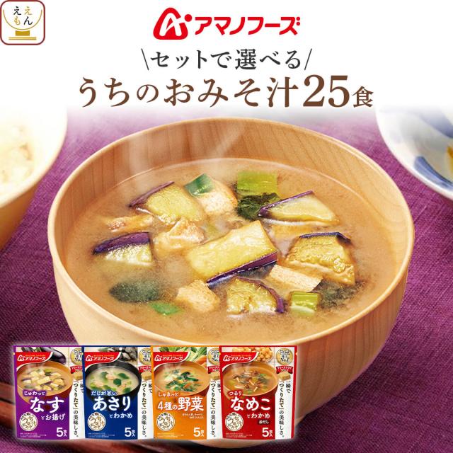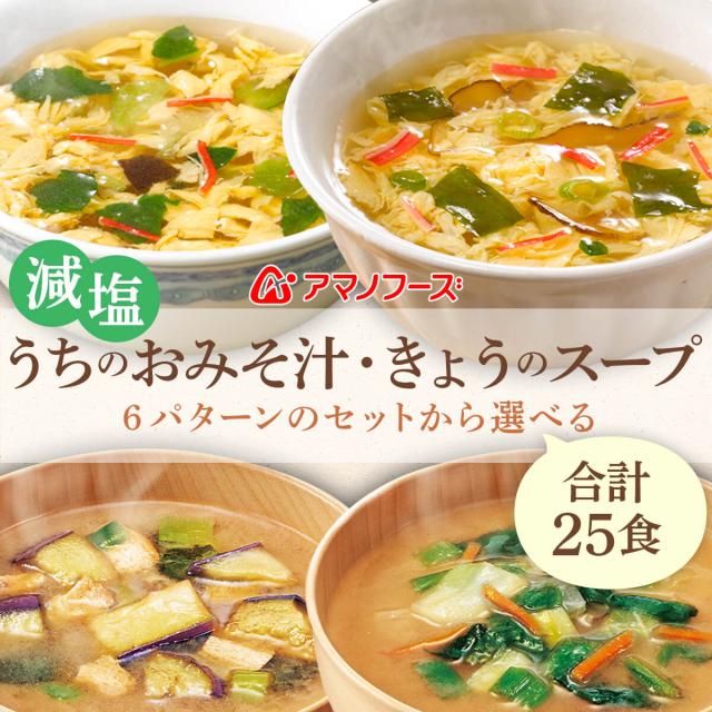 アマノフーズ フリーズドライ 減塩 味噌汁 スープ うちのおみそ汁 きょうのスープ セット で 選べる 25食 詰め合わせ 【 送料無料 北海道沖縄以外】 インスタント 即席味噌汁 常温保存 ご飯のお供 保存食 お年賀 2026 帰省 お土産 ギフト
