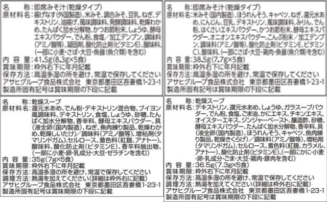 | 変更後 | ■ 減塩 うちのおみそ汁 5食入 減塩なすとお揚げ 41.5g 減塩4種の野菜 38.5g |