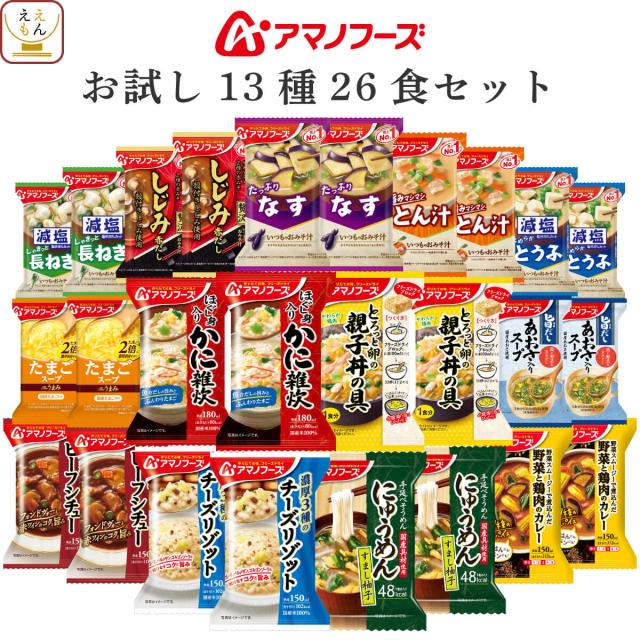 母の日 アマノフーズ フリーズドライ お試し 13種13食 詰め合わせ セット 【 送料無料 北海道沖縄以外】 インスタント 食品 即席 味噌汁 スープ 雑炊 カレー 惣菜 にゅうめん リゾット シチュー 備蓄 非常食 保存食 2026 新生活 内祝い ギフト