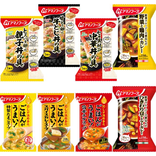アマノフーズ フリーズドライ 白ごはん に合う 8種11食 詰め合わせ セット 【 送料無料 北海道沖縄以外】 インスタント スープ カレー 惣菜 おかず 丼の具 ご飯のお供 即席 食品 常温保存 備蓄 食料 保存食 2026 バレンタイン ホワイトデー