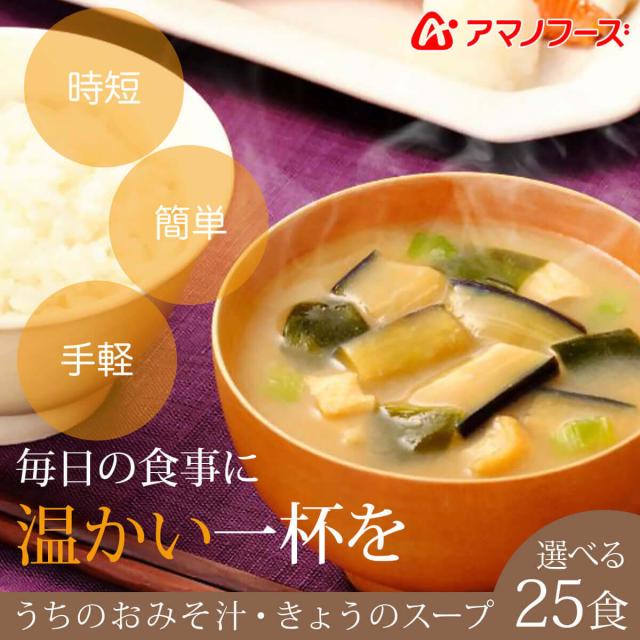 アマノフーズ フリーズドライ 味噌汁 スープ うちのおみそ汁 きょうのスープ 選べる 25食 詰め合わせ セット 【 送料無料 北海道沖縄以外】 インスタント 即席味噌汁 減塩 常温保存 ご飯のお供 備蓄 保存食 お年賀 2026 帰省 お土産 ギフト