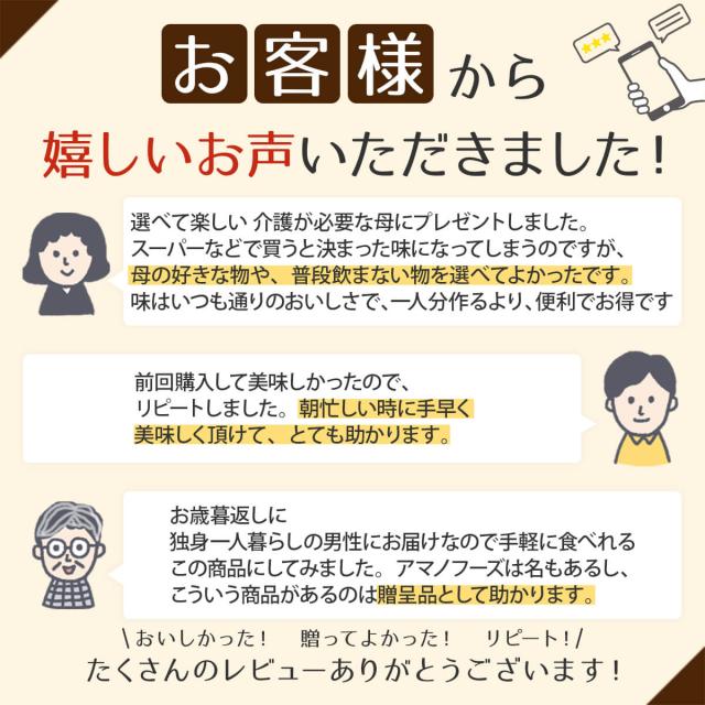 - ケガをして料理が出来ない母に送りました。色々な味があってよかったです。すぐに届いたので助かりました。