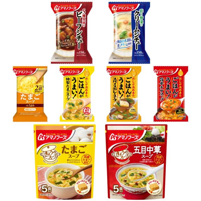 アマノフーズ フリーズドライ スープ シチュー 8種22食 詰め合わせ セット 【 送料無料 北海道沖縄以外】 インスタント 食品 洋風 和風 即席スープ ビーフシチュー クリームシチュー 備蓄 保存食 非常食 2026 バレンタイン ホワイトデー